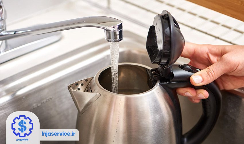 - کتری را بشویید و تا میزان مشخص شده، آب تصفیه شده درون آن بریزید.